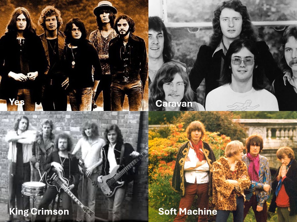 Het nummer Close to the Edge (Close to the Edge, 1972) van Yes duurt bijna 19 minuten en heeft een episch karakter met symfonische grandeur. Het album geldt als het hoogtepunt van Yes’ carrière. Moon in June ( Third, 1970) van Soft Machine markeert de overgang van psychedelische rock naar jazzy prog rock met lange instrumentale passages met surrealistische teksten. Het volledig instrumentale nummer ‘Slightly All the Time’ (Third, 1970), ook van Soft Machine,bevat uitgebreide en virtuoze saxofoon- en orgelpartijen en beweegt zich soepel tussen jazz, rock en avant-garde. Caravan’s nummer ‘If I Could Do It All Over Again, I’d Do It All Over You (If I Could Do It All Over Again, I’d Do It All Over You, 1970) combineert een pakkende melodie met complexe jazzy onderdelen.
